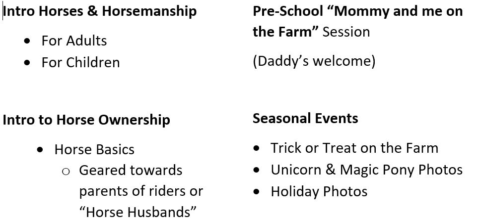 Horse leasing options available. *June 2025 we are not accepting any new lesson students, and will update this page when we have space available in the program. Wait list available. *